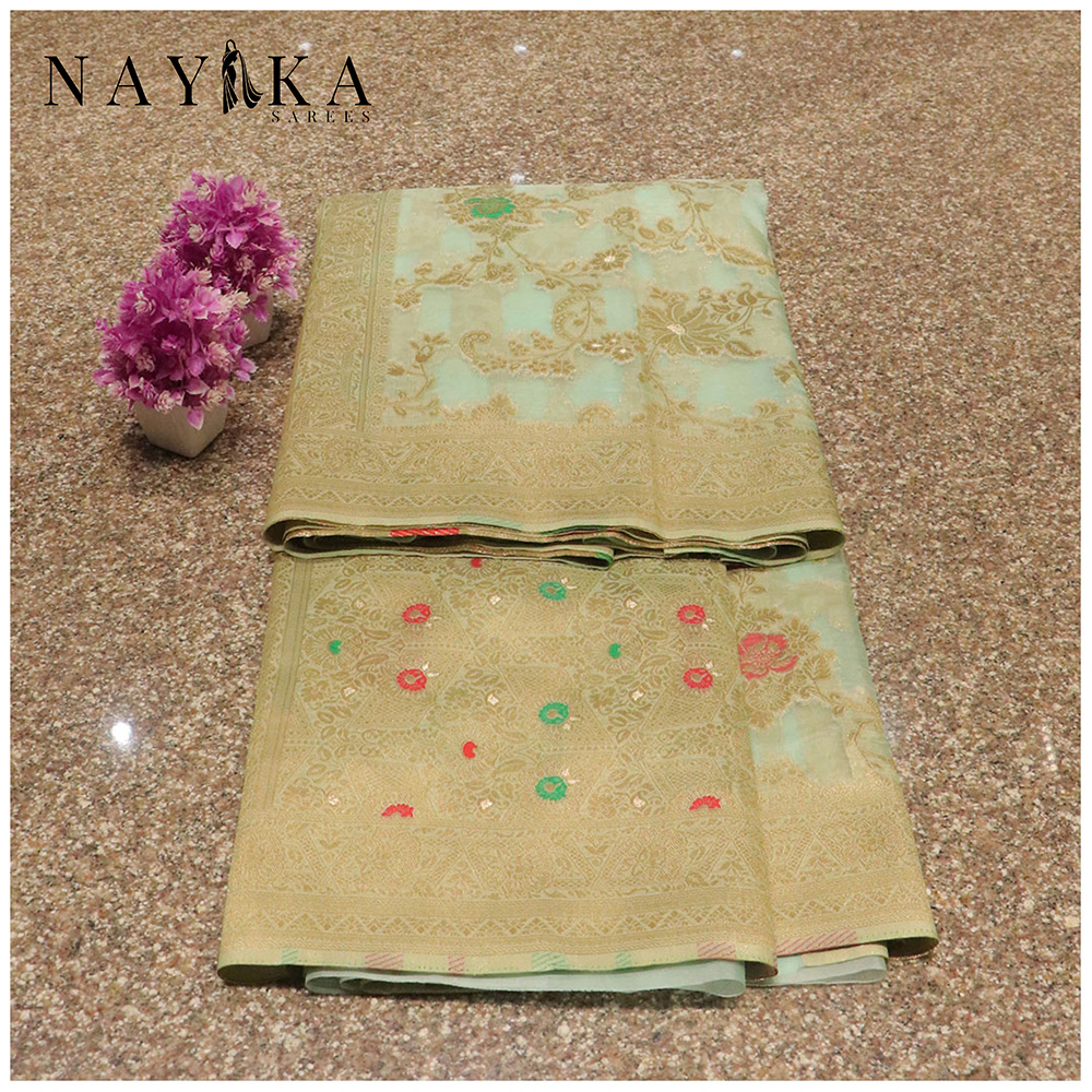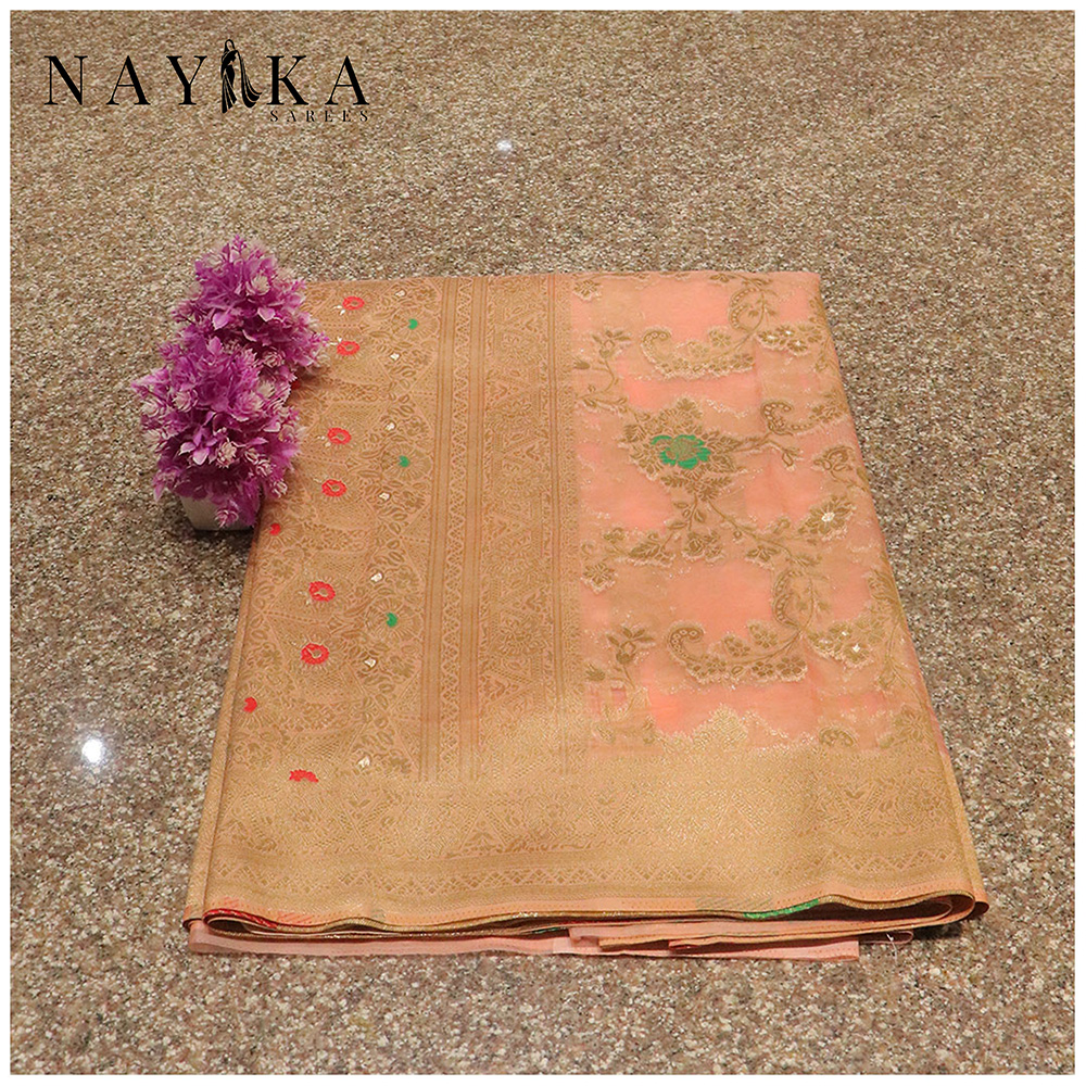 Elevate your style with our ethereal organza sarees. Crafted from fine silk threads, these sarees are known for their sheer elegance and lightweight appeal.