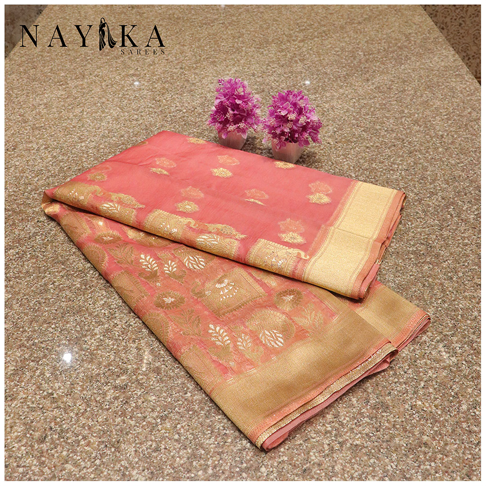 Elevate your style with our ethereal organza sarees. Crafted from fine silk threads, these sarees are known for their sheer elegance and lightweight appeal.